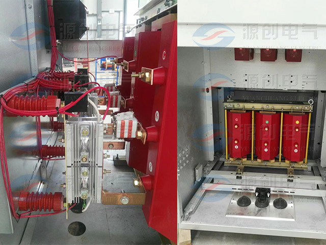 對于小容量電動機(3000KW以下),可實現手車式高壓真空斷路器、旁路接觸器、軟啟動器一體化設計,一體化軟啟動可與KYN-28開關柜共母排并柜。