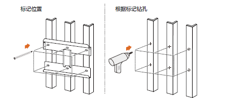 (10) 安裝壁掛架,在金屬支架上安裝需要在支架上對(duì)應(yīng)壁掛架螺絲孔位置打孔,然后固定壁掛架。在墻面上安裝需在對(duì)應(yīng)壁掛架螺絲孔位置打膨脹螺栓。